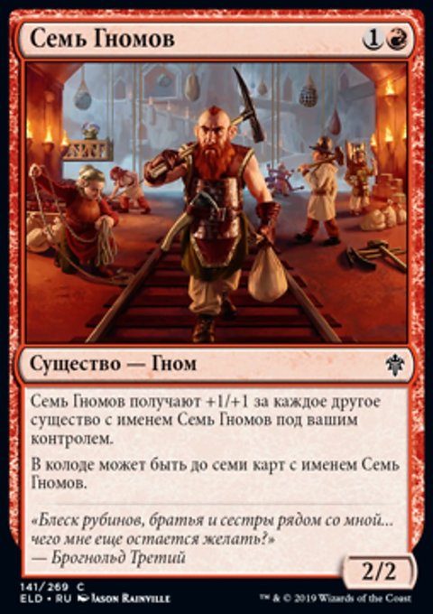 В колоде может быть до семи карт с именем Семь Гномов.