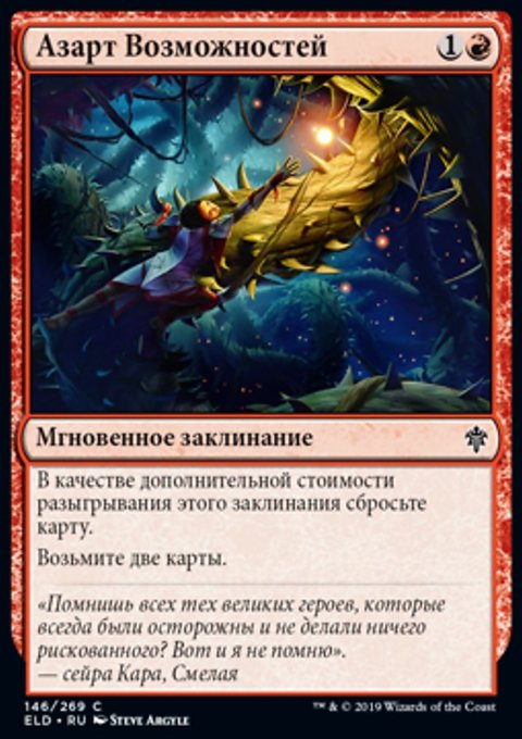 Вы можете сбросить карту. Если вы это делаете, возьмите карту. (Затем изгоните эту карту. Позже вы можете разыграть эту карту как существо из изгнания.)