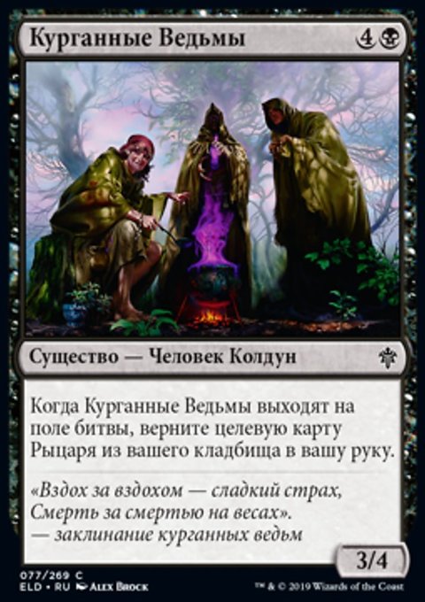 Когда Курганные Ведьмы выходят на поле битвы, верните целевую карту Рыцаря из вашего кладбища в вашу руку.