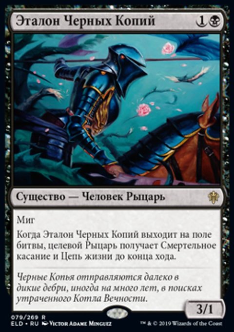 Когда Эталон Черных Копий выходит на поле битвы, целевой Рыцарь получает Смертельное касание и Цепь жизни до конца хода.
