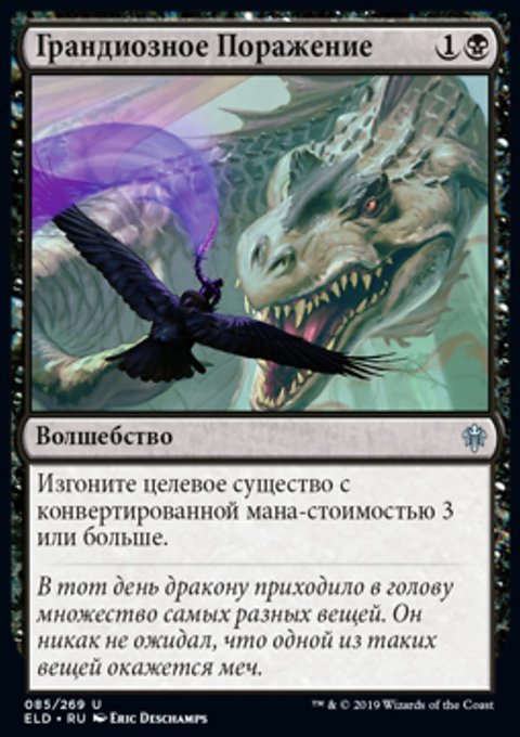 Изгоните целевое существо с конвертированной мана-стоимостью 3 или больше.
