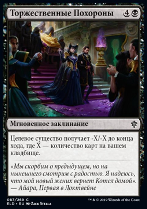 Целевое существо получает -X/-X до конца хода, где Х — количество карт на вашем кладбище.