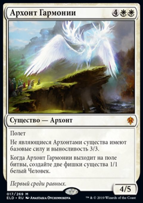 Когда Архонт Гармонии выходит на поле битвы, создайте две фишки существа 1/1 белый Человек.
