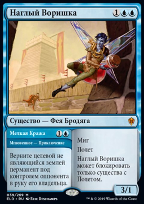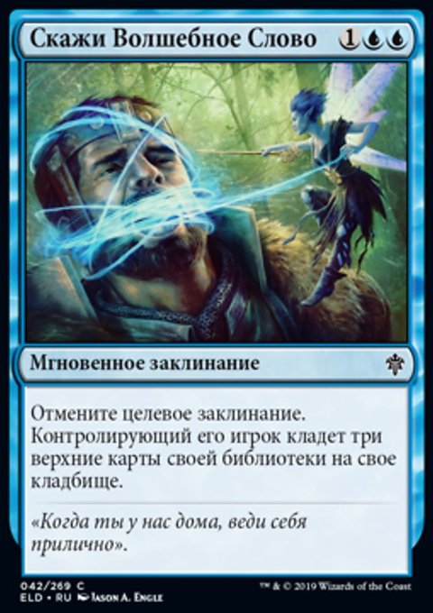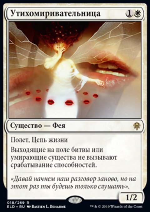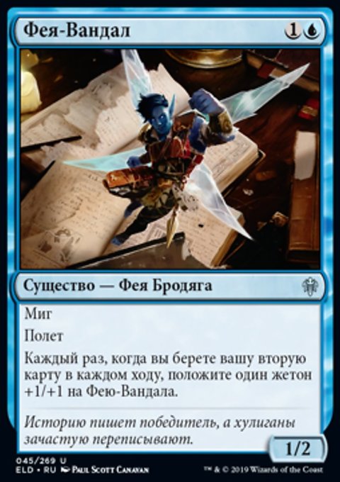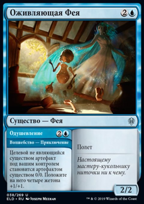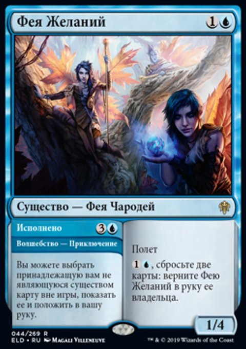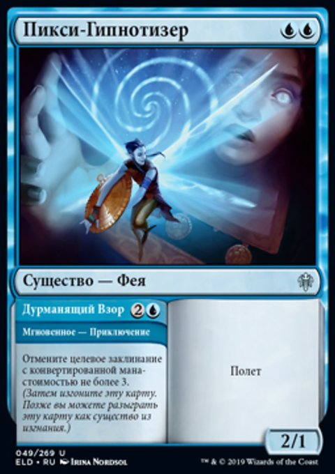 Верните целевое существо с конвертированной мана-стоимостью X в руку его владельца. Вы создаете X фишек существа 1/1 синяя Фея с Полетом.