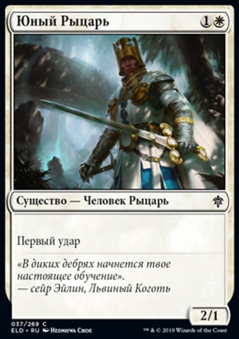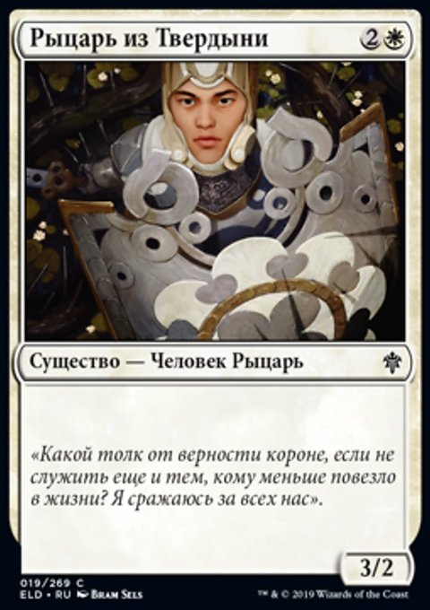 : создайте одну фишку существа 2/2 белый Рыцарь с Бдительностью.