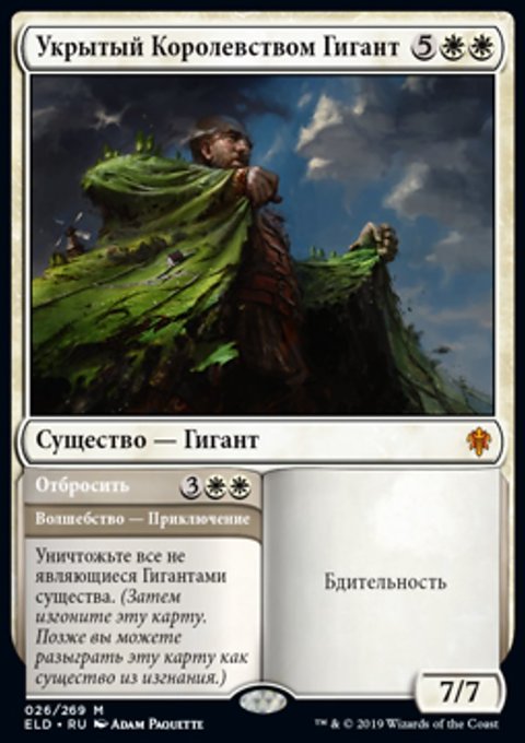 Уничтожьте все не являющиеся Гигантами существа. (Затем изгоните эту карту. Позже вы можете разыграть эту карту как существо из изгнания.)