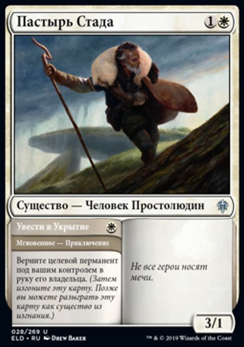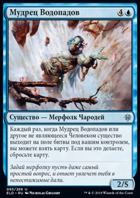 Каждый раз, когда Мудрец Водопадов или другое не являющееся Человеком существо выходит на поле битвы под вашим контролем, вы можете взять карту. Если вы это делаете, сбросьте карту.