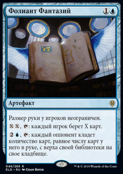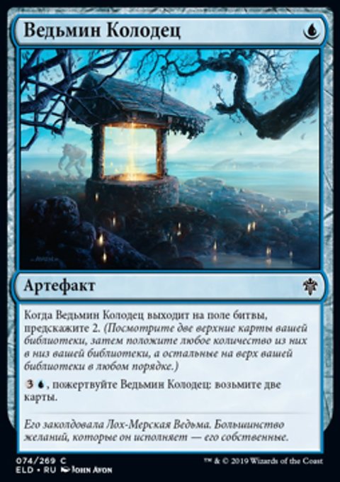 Когда Ведьмин Колодец выходит на поле битвы, предскажите 2. (Посмотрите две верхние карты вашей библиотеки, затем положите любое количество из них в низ вашей библиотеки, а остальные на верх вашей библиотеки в любом порядке.)