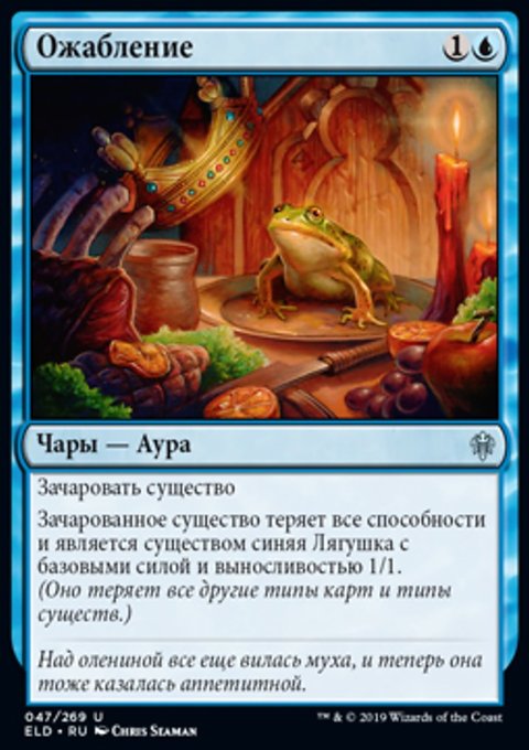 Поверните целевое существо. Оно не разворачивается во время следующего шага разворота контролирующего его игрока. (Затем изгоните эту карту. Позже вы можете разыграть эту карту как существо из изгнания.)
