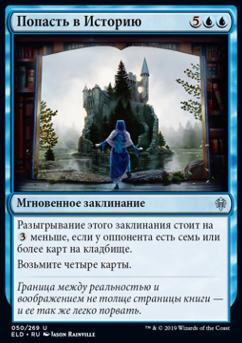Целевой игрок кладет четыре верхние карты своей библиотеки на свое кладбище. (Затем изгоните эту карту. Позже вы можете разыграть эту карту как существо из изгнания.)