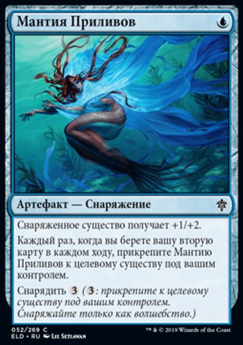 Каждый раз, когда вы берете вашу вторую карту в каждом ходу, прикрепите Мантию Приливов к целевому существу под вашим контролем.