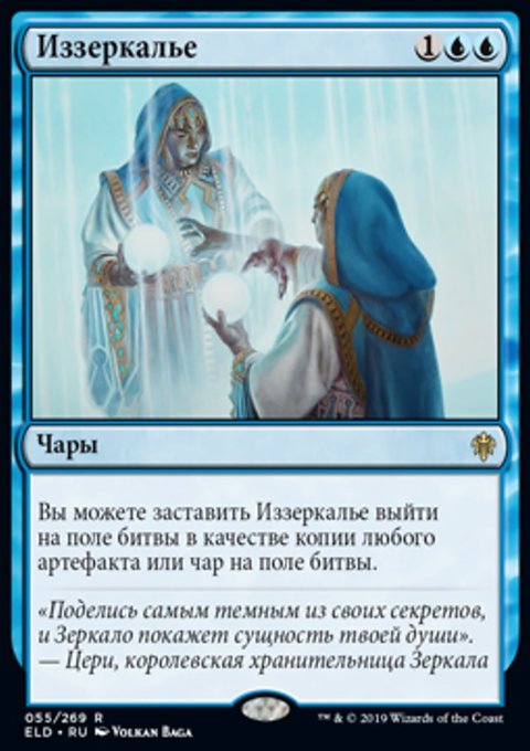Вы можете заставить Иззеркалье выйти на поле битвы в качестве копии любого артефакта или чар на поле битвы.