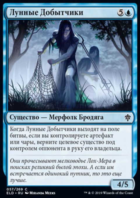 Когда Лунные Добытчики выходят на поле битвы, если вы контролируете артефакт или чары, верните целевое существо под контролем оппонента в руку его владельца.