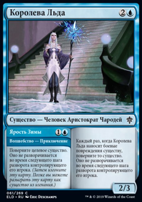 Каждый раз, когда Королева Льда наносит боевые повреждения существу, поверните то существо. Оно не разворачивается во время следующего шага разворота контролирующего его игрока.