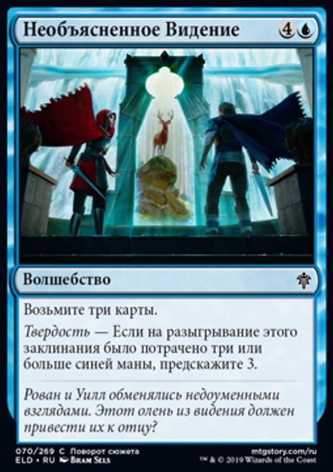 Твердость — Если на разыгрывание этого заклинания было потрачено три или больше синей маны, предскажите 3.