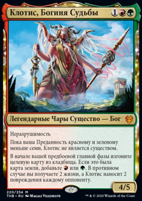 Пока ваша Преданность красному и зеленому меньше семи, Клотис не является существом.
