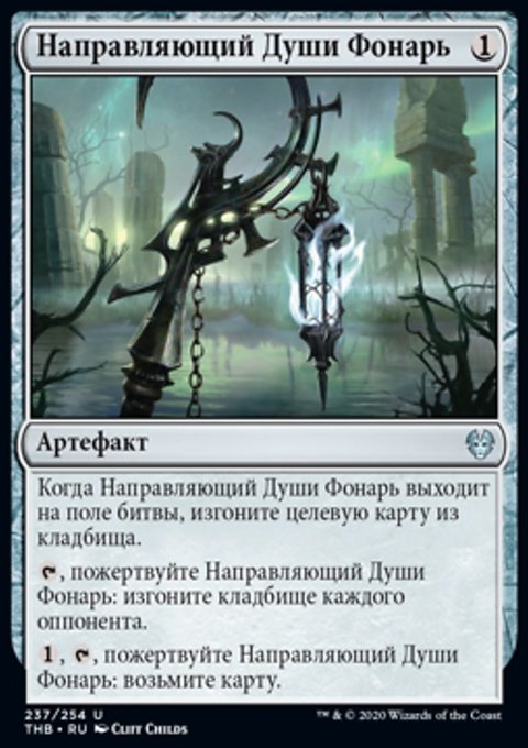 Когда Направляющий Души Фонарь выходит на поле битвы, изгоните целевую карту из кладбища.