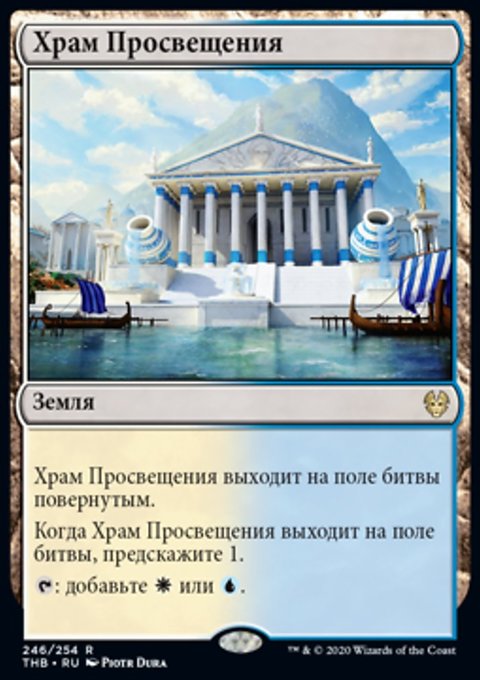 Когда Храм Просвещения выходит на поле битвы, предскажите 1. (Посмотрите верхнюю карту вашей библиотеки. Вы можете положить ту карту в низ вашей библиотеки.)