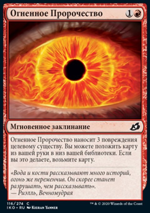 Fire Prophecy deals 3 damage to target creature. You may put a card from your hand on the bottom of your library. If you do, draw a card.