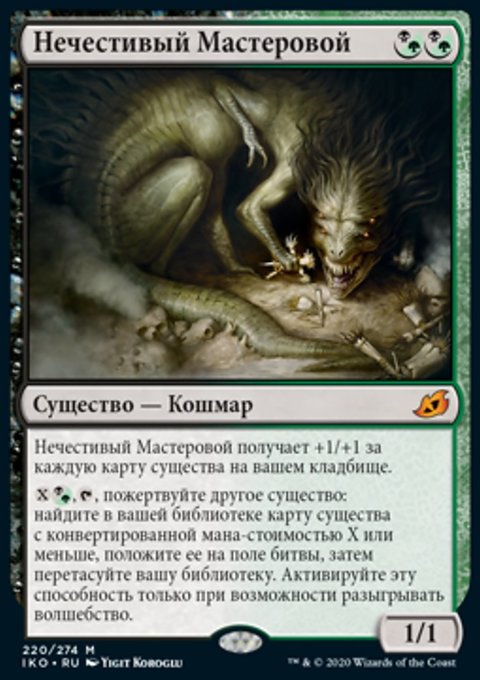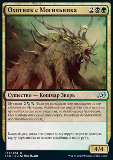 Когда Могильщик выходит на поле битвы, вы можете вернуть целевую карту существа из вашего кладбища в вашу руку.