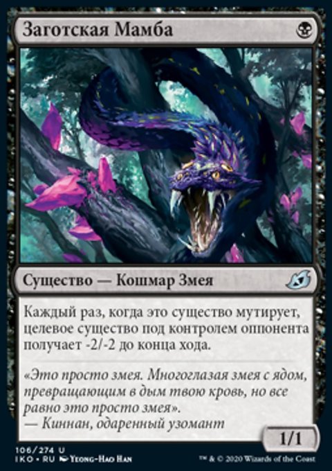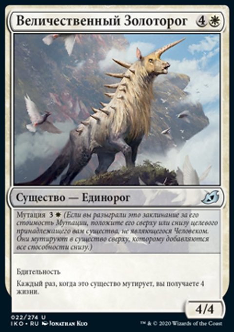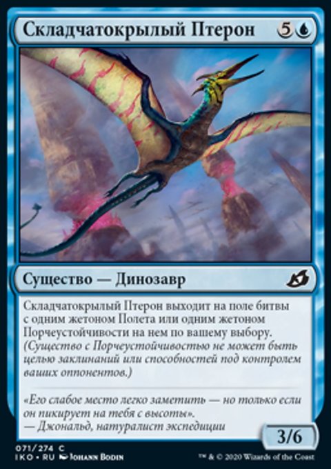 2+ Хотелось бы назвать Птерона хорошей базой для мутаций (а существо с Порчеустойчивостью – лучшее из того, на что стоит приземлять карты с этим свойством), но цена в 6 ман… У вас к этому моменту кончатся мутанты. В остальном, не так плохо. Дорогая тушка с полезным жетоном на выбор.