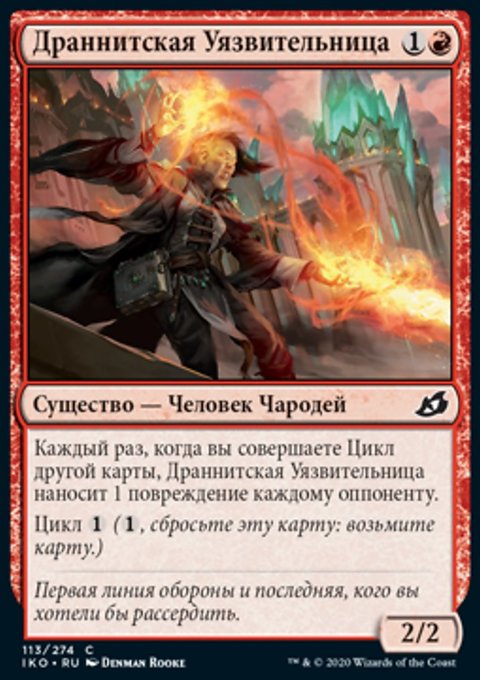 . В лимитед Икории Цикл тоже даст жару: здесь есть карты, делающие при Цикле эффекты и перманенты, полезно реагирующие на Цикл. Смотрится очень оптимистично, но стоит помнить, что главная проблема цикла – лимит колоды. Каждый цикл – это минус одно заклинание и часто бывает так, что после серии циклов "просто так" на руках оказываются одни земли (а частых цикл-земель в этот раз не привезли), так что подходите к этому делу с умом.