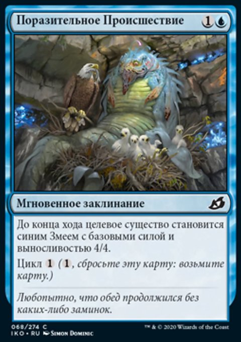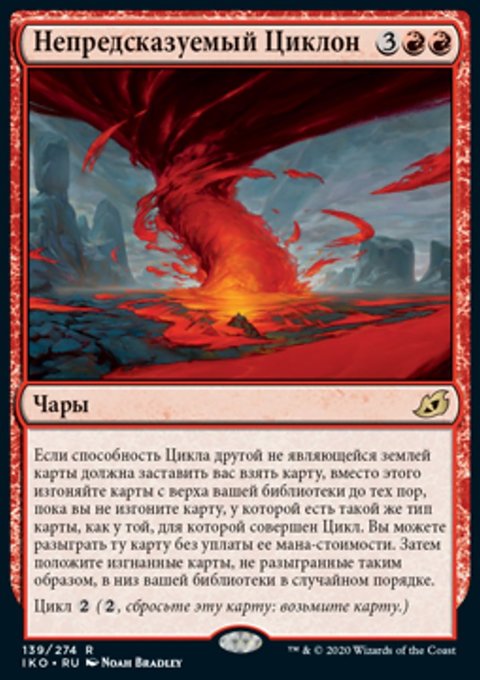 ставит с цикла непредсказуемое существо. #Горячие головы# в вечных форматах уже хотят играть с Циклона Эмракулов. Здесь Эмракул не водится, но есть большие существа с циклом, так что потенциал у карты есть.