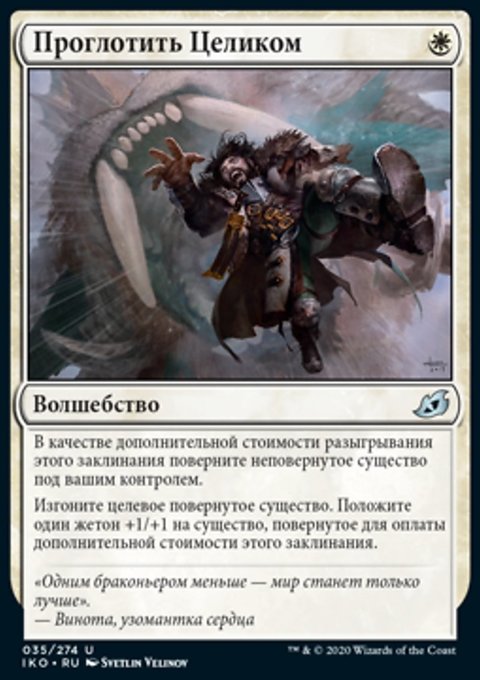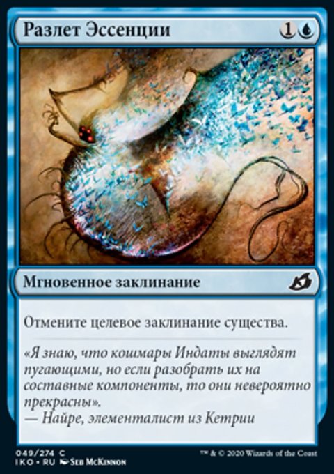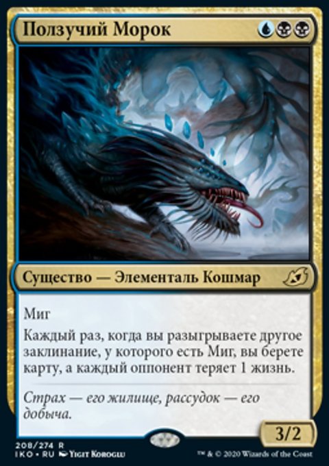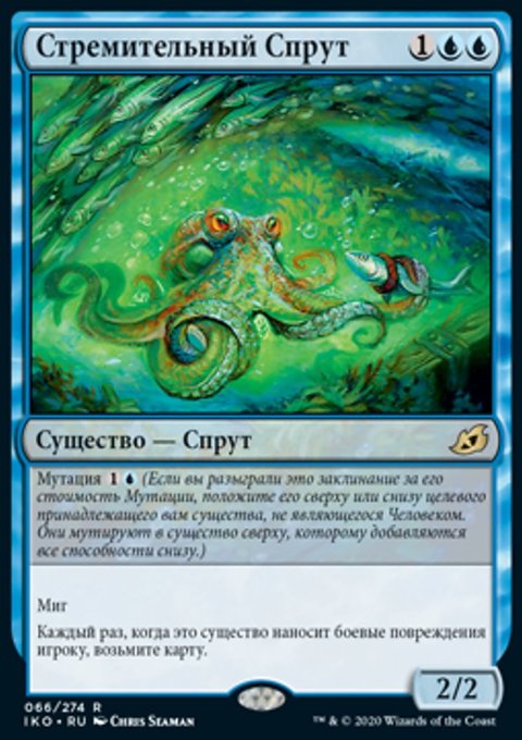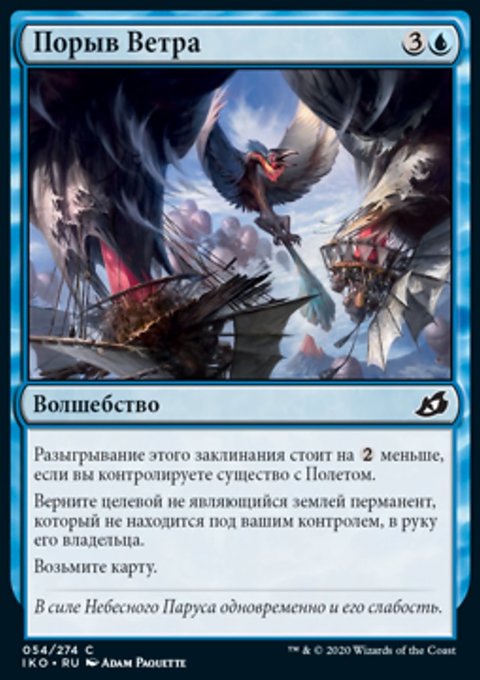 3 Возвращать в руки существ, ещё и с взятием карты – достаточно неплохо. Жаль, что не возвращает своих и картой перезагрузки мутанта (и новых мутаций) это не будет. В синем цвете много достойных летающих карт, а в сочетании с белым (в UW архетипе) Порыв будет куда лучше.