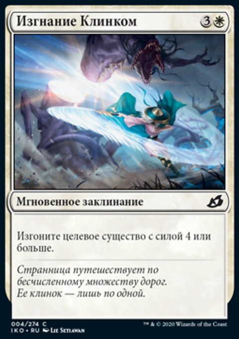 2+ Можно спастись от толпы малолеток, или удачно завершить массовый размен существами (лучшее применение). Единственное, синий в Икории не совсем про много существ. Половина архетипов не получит от карты много пользы..