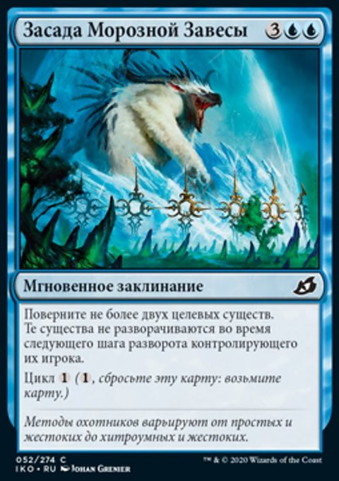 Когда Морозная Рысь выходит на поле битвы, поверните целевое существо под контролем оппонента. То существо не разворачивается во время следующего шага разворота контролирующего его игрока.