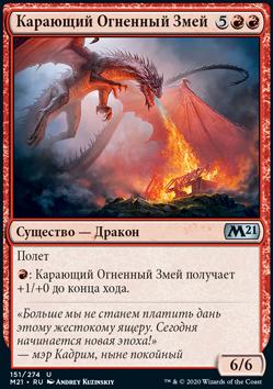 Жгучее Драконье Пламя наносит 3 повреждения целевому существу или planeswalker-у. Если то существо или planeswalker должно умереть в этом ходу, изгоните его вместо этого.