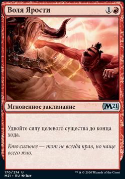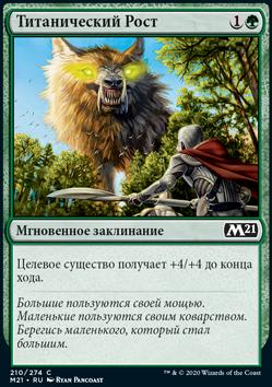 Положите один жетон +1/+1 на целевое существо под вашим контролем. Затем то существо наносит повреждения, равные своей силе, целевому существу не под вашим контролем.