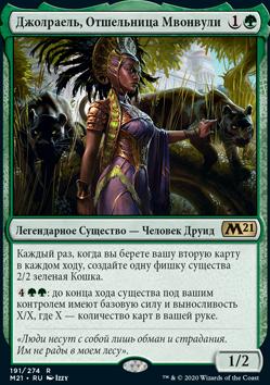 Каждый раз, когда вы берете вашу вторую карту в каждом ходу, создайте одну фишку существа 2/2 зеленая Кошка.