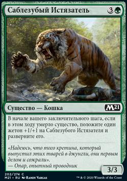 В начале вашего заключительного шага, если в этом ходу умерло существо, положите один жетон +1/+1 на Саблезубого Истязателя и разверните его.