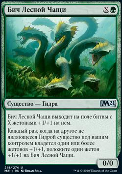 Каждый раз, когда на другое не являющееся Гидрой существо под вашим контролем кладется один или более жетонов +1/+1, положите один жетон +1/+1 на Бич Лесной Чащи.