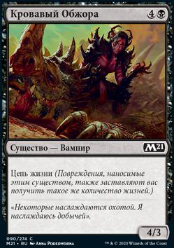 Когда Кровожадный Гурман выходит на поле битвы, каждый оппонент жертвует существо.