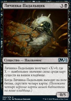 Личинка-Падальщик получает +X/+0, где Х — наибольшее значение силы среди карт существ на вашем кладбище.