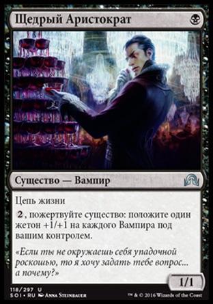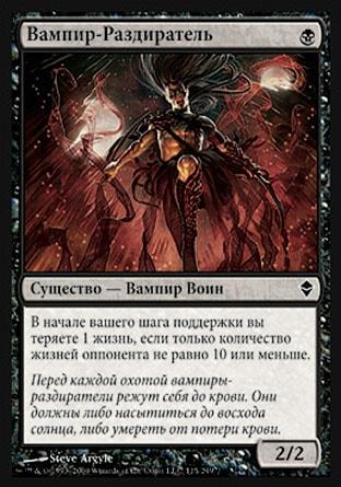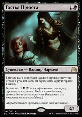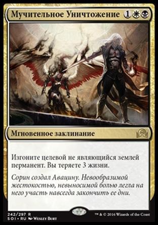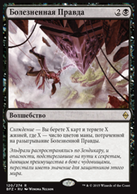 В начале вашего этапа поддержки покажите верхнюю карту своей библиотеки и поместите ее в свою руку. Вы теряете число пунктов жизни, равное общей мановой стоимости этой карты.