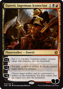 −10: You get an emblem with "Whenever an artifact is put into your graveyard from the battlefield, return that card to the battlefield at the beginning of the next end step."