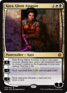 −9: вы получаете эмблему со способностью «Каждый раз, когда вы разыгрываете заклинание, целевой оппонент кладет пять верхних карт своей библиотеки на свое кладбище».