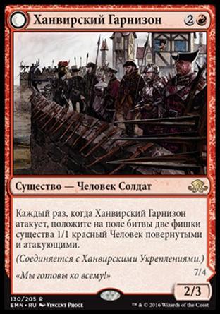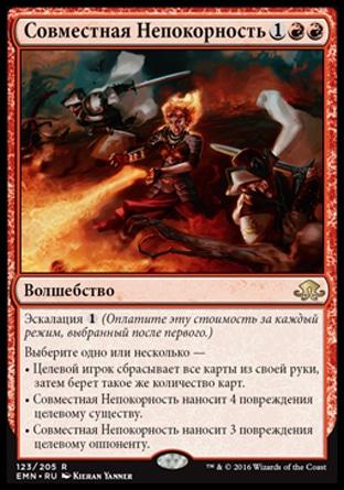 +1: положите на поле битвы две фишки существа 3/1 красный Элементаль с Ускорением. Изгоните их в начале следующего заключительного шага.