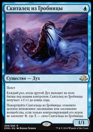 Каждый раз, когда другой Дух выходит на поле битвы под вашим контролем, Скиталец из Гробницы получает +1/+1 до конца хода.