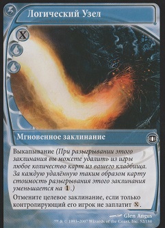 Когда Провидец Узла Мыслей выходит на поле битвы, целевой оппонент показывает свою руку. Вы выбираете из нее не являющуюся землей карту и изгоняете ту карту.