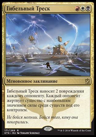 -6: разделите все перманенты под контролем целевого игрока на две стопки. Тот игрок приносит в жертву все перманенты в стопке по его выбору.