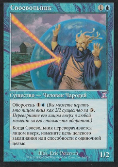 +2: посмотрите верхнюю карту библиотеки целевого игрока. Вы можете положить ту карту в низ библиотеки того игрока.