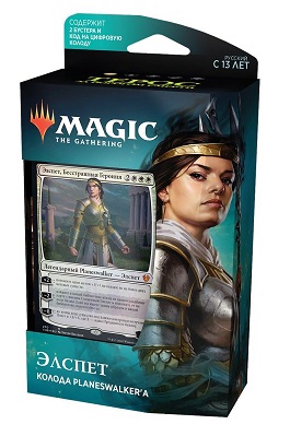 Колода Planeswalker'a - это уже собранная и сбалансированная колода, которая построена так, чтобы даже новички могли ознакомиться с картами, взаимодействиями и механиками сета. У таких колод есть "главный герой" - фойловая карта Planeswalker'a, вокруг которого и строится колода и сюжет. Так же имеются специальные карты, которые взаимодействуют с этим planeswalker'ом и в обычных бустерах этого сета они не вскрываются. Колоду можно менять и модернизировать - тут есть простор для творчества и возможность поменять какие-то карты. Специально для этого в коробку вложено дополнительно 2 бустера, из которых можно вскрыть нужные карты для улучшения колоды и пополнения коллекции.