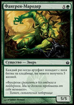Каждый раз когда артефакт попадает с поля битвы на кладбище, вы можете получить 5 жизней.