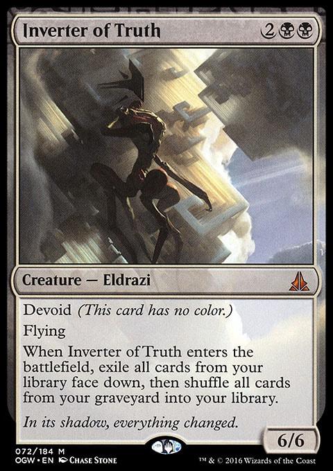When Inverter of Truth enters the battlefield, exile all cards from your library face down, then shuffle all cards from your graveyard into your library.