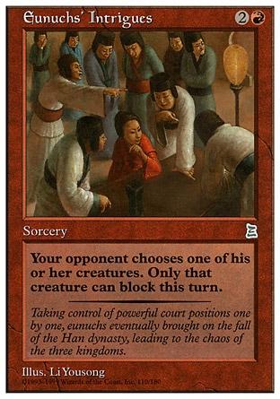 Target opponent chooses a creature he or she controls. Other creatures he or she controls can't block this turn.