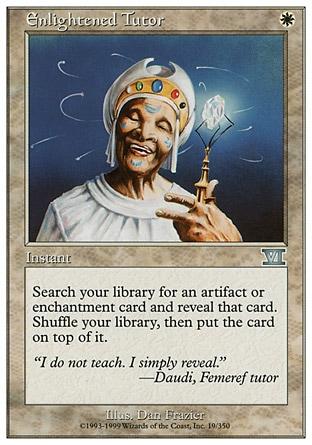 Вот вкратце все советы и напутствия по сайдборду в конкретных матчах. Напоследок хочу сказать пару слов о карточке Enlightened Tutor, которая в настоящий момент встречается в сайдборде Death and Taxes практически всегда. Enlightened Tutor – карта очень сильная, которая позволяет нам найти критичный артефакт/чары в нужный момент. Но за силу нужно платить, и фактически розыгрыш Тютора лишает нас карты (так как разыгрываем мы Enlightened Tutor с руки, а нужную карту получаем наверх колоды). Поэтому играть Тютором стоит только в тех матчах, где найденная карта гарантирует нам если не победу, то большое преимущество над оппонентом, как, например, Rest in Peace в мачте с Дреджом или Circle of Protection: Red в матче с Бурном. В матчах, где розыгрыш нужной карты является не основополагающим действием, а лишь частью нашей стратегии, применение Enlightened Tutor может слишком сильно сказаться на нашей руке и привести к поражению, поэтому в этих матчах его садить не стоит (например, в мачте с Джандом). При этом следите, что бы у оппонента не было возможности помешать нам колоду после сыгранного Тютора.